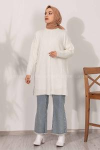 Modalamelif Yarım Boğazlı Yırtmaç Detaylı Salaş Tunik Beyaz