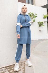 Modalamelif Yarım Fermuarlı Kapşonlu İkili Takım İndigo