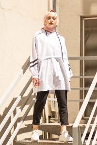 Modalamelif Yarım Fermuarlı Kapşonlu Tunik Beyaz