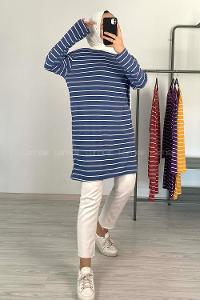 Modalamelif Yatay Çizgili Tunik Açık Mavi
