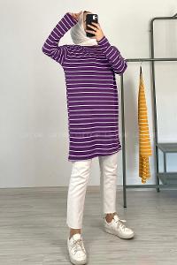 Modalamelif Yatay Çizgili Tunik Mor