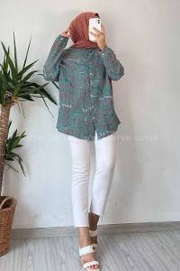 Lamelif Omuz Vatka Detaylı Tesettür Gömlek Yağ Yeşili