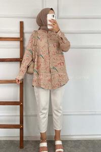 Lamelif Müslin Tesettür Gömlek Soft kahve