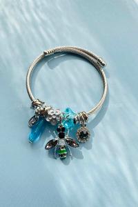 Lamelif Mavi Renkli Çiçek Desen Mineli Bilezik
