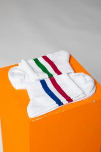 Modalamelif Yeşil-Kırmızı Şeritli Beyaz Çorap