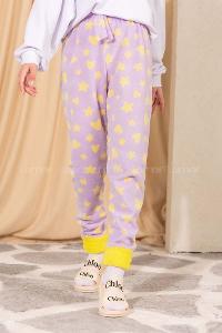 Modalamelif Yıldız ve Kalp Desenli Paçası Yumoş Detaylı Pijama Lila
