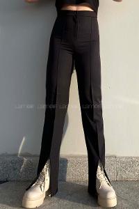 Modalamelif Yırtmaç Detaylı Havuç Paça Pantolon Siyah