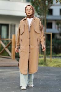 Lamelif Against Omuz Apoletli Trençkot Bej
