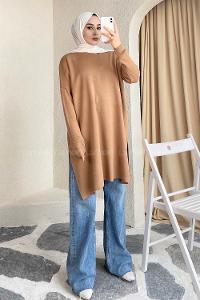 Modalamelif Yırtmaç Detaylı Tunik Sütlükahve