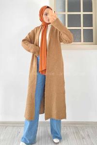 Modalamelif Yırtmaç Detaylı Uzun Triko Hırka Sütlükahve