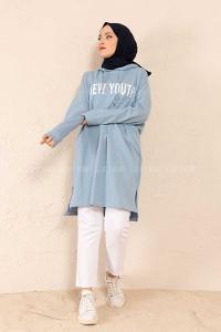 Modalamelif Yırtmaçlı New Youth Baskılı Tunik Açık Mavi