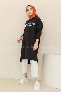 Modalamelif Yırtmaçlı New Youth Baskılı Tunik Siyah