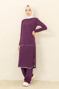 Lamelif Yırtmaçlı İkili Takım Mürdüm