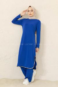 Modalamelif Yırtmaçlı Sandy İkili Takım Saks Mavisi