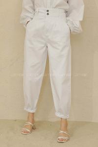 Modalamelif Yüksek Bel Balon Mom Jean Beyaz