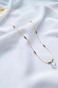 Lamelif Gold Çelik Çokrenkli Kristal Taşlı Kararmaz Kolye