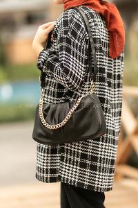 Lamelif Zincir Aksesuarlı Büzgülü Kadın Çanta Siyah