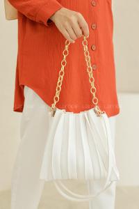 Modalamelif Zincir Aksesuarlı Pileli Çanta Beyaz
