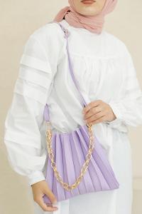 Modalamelif Zincir Aksesuarlı Pileli Çanta Lila