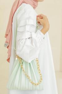 Modalamelif Zincir Aksesuarlı Pileli Çanta Mint Yeşili
