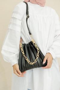 Modalamelif Zincir Aksesuarlı Pileli Çanta Siyah