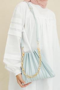 Modalamelif Zincir Aksesuarlı Pileli Çanta Turkuaz