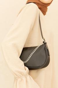 Modalamelif Zincir Aksesuarlı Saten Çanta Siyah