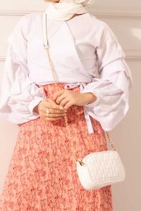 Modalamelif Zincir Askılı Kapitone Çanta Beyaz