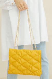 Modalamelif Zincir Askılı Kapitone Çapraz Çanta Hardal Sarısı