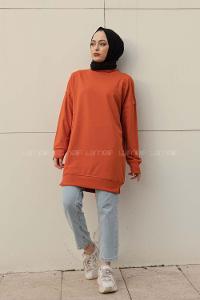 Lamelif Kapşonlu Oversize Yan Cepli Sweat Camel