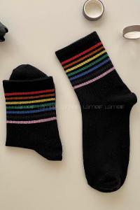 Modalamelif Renkli Çizgiler Siyah Çorap