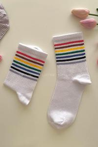 Modalamelif Renkli Çizgiler Beyaz Çorap