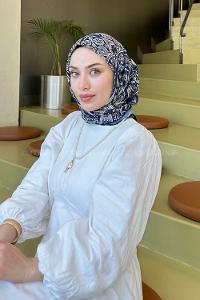 Lamelif Retro Desen Soft Eşarp Gece Mavisi