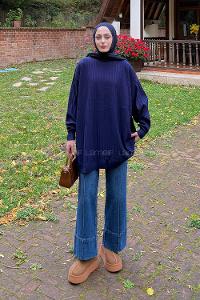 Lamelif Dik Yaka Balon Kazak Lacivert