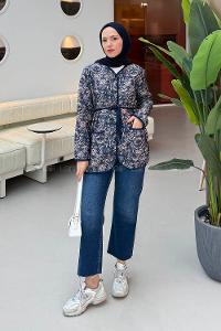Lamelif Dekoratif Cep Detaylı Tesettür Ceket Lacivert