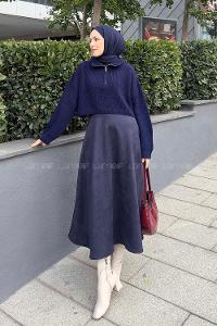 Lamelif Kol Drop Detaylı Kazak Lacivert