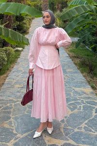Lamelif Vual Kuşaklı Tesettür Elbise Pembe