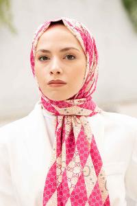 Lamelif Gücci Desen Mos Serisi Şal Fuşya-Sarı