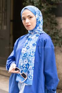 Lamelif Flora Desen Mos Serisi Şal Gök Mavi