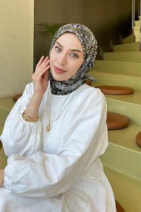 Lamelif Retro Desen Soft Eşarp Ekru Siyah