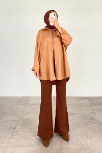 Lamelif Müslin Tesettür Gömlek Soft kahve