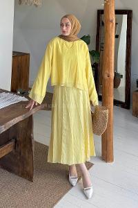 Lamelif Etek-Bluz İkili Tesettür Takım Sarı